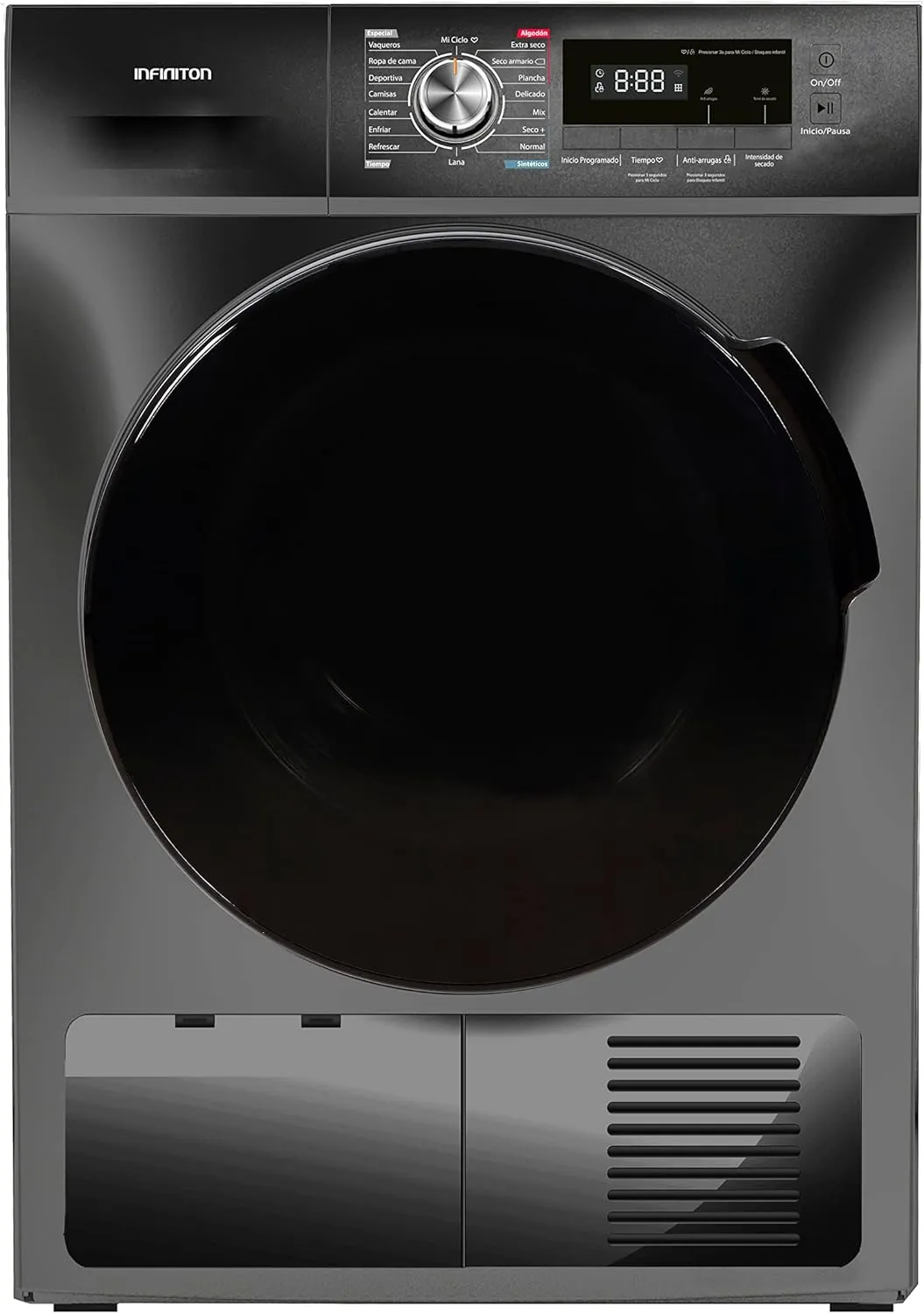 Secadora INFINITON SD-DG85C de Carga Frontal, Función Antiarrugas, Inicio Programable 24h, 8 kg, Clase Energética B, Color Acero Inoxidable, Pantalla LED Verde
