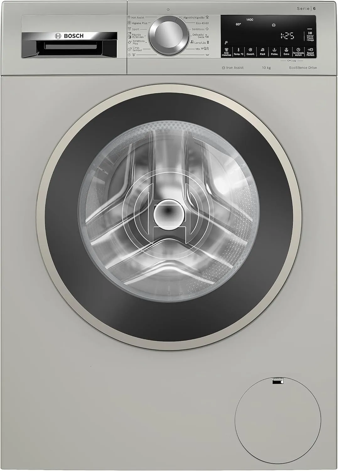 Lavadora Bosch de carga frontal, 10 kg, 1400 RPM, Serie 6, Anti-Manchas, HygienePlus, ActiveWater Plus, motor EcoSilence, Acero Mate Antihuellas, WGG254ZXES